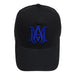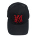 Black baseball cap from Amiri. Made of cotton and mesh, this item features white ‘M.A.’ logo embroidery on the front and a logo patch accompanied by a snap adjuster at the back.