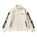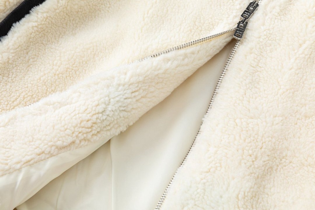 High neck, dropped shoulders, terry bones appliqué at sleeves, ribbed trims, logo embroidery, two slip pockets with faux leather trims, internal drawstring hem, fully lined.