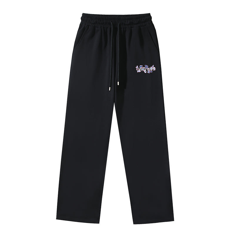 Off White Floral print Straight Loose Casual Pants #1074