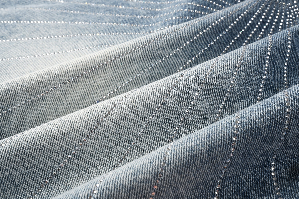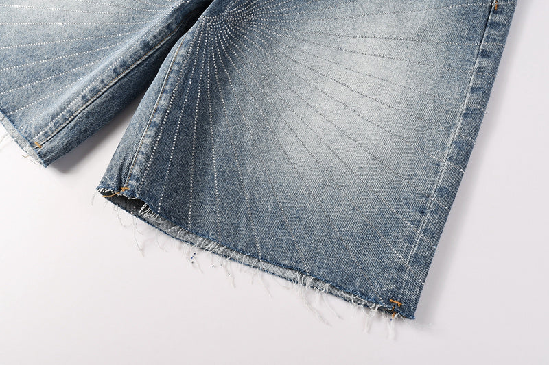 Purple Brand Crystal Diamond Denim Shorts #5100