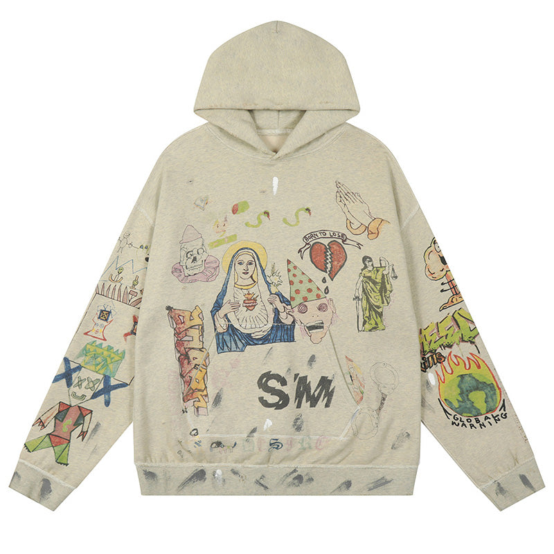 SAINT MICHAEL Hand drawn graffiti plus velvet Hoodies